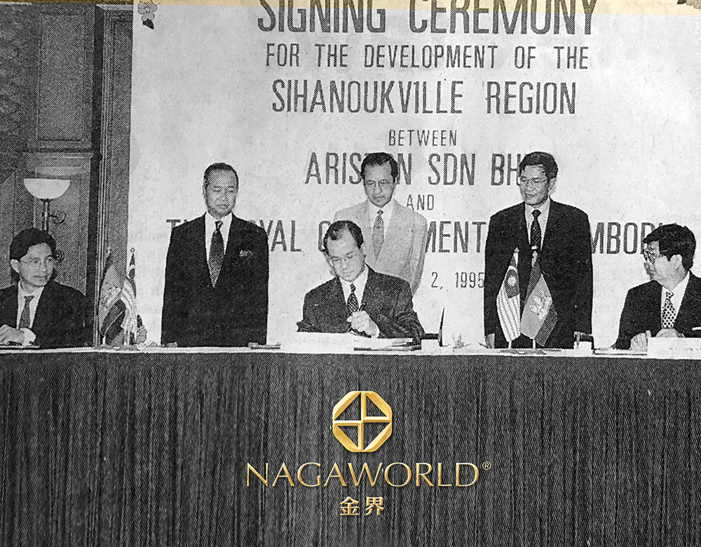 On 2 January 1995, the RGC and Ariston signed the SDA in Kuala Lumpur, Malaysia. The signing ceremony was attended by prominent figures including the late Dr Chen and the former Prime Ministers of both Cambodia and Malaysia. This agreement paved the way for the inauguration of the Naga Resorts Casino by Prince Norodom Ranaridh on 1 May 1995, which was situated on a barge along the Bassac River in Phnom Penh.