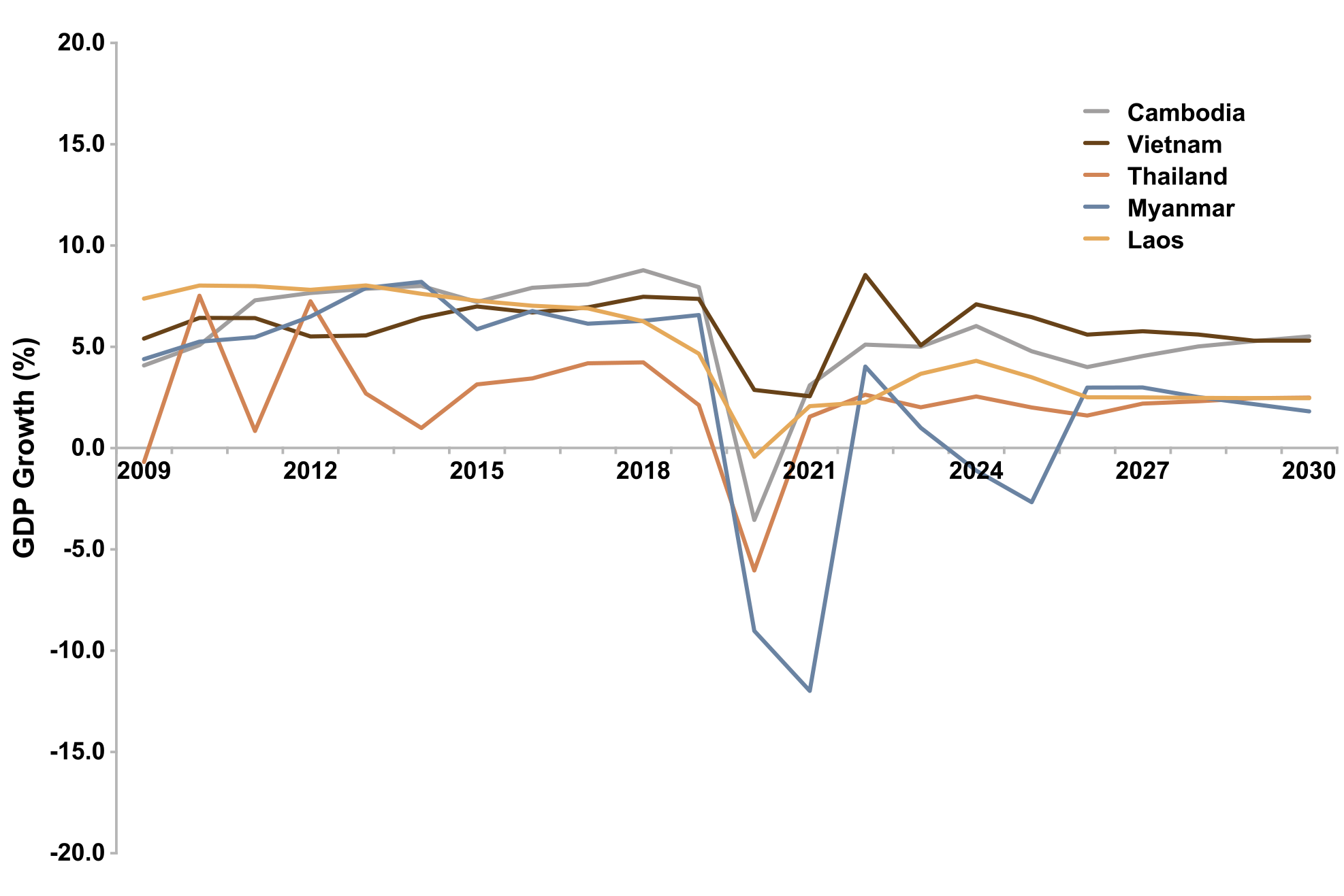 - Cambodia has registered a GDP growth of 6.0% on average over the past 15 years (2009-2024), and the IMF projects that the country will grow at an average annual growth rate of 4.8% between 2025 and 2030.