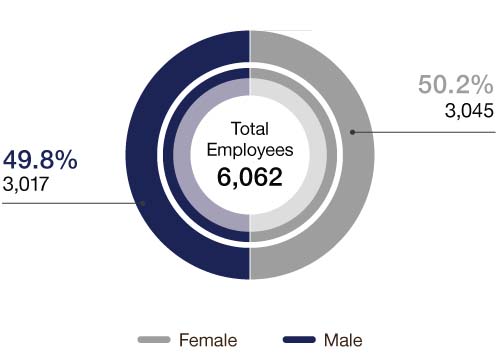 We are proud to maintain a gender-balanced workforce. In 2024, women comprised 50.2% of our total workforce, and men represented 49.8%. Women held 33% of managerial roles and 51% of non-managerial roles.