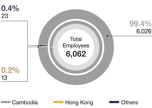 As of 31 December 2024, our workforce had 6,062 full-time employees. Our hiring strategy of focusing on local hiring is reflected in our employee demographics. 93% of our workforce are Cambodians, while 7% consist of a diverse mix of expatriates from various nationalities. Our international team members represent 33 nationalities spanning Asia, Europe, the Americas, Africa, and Oceania.