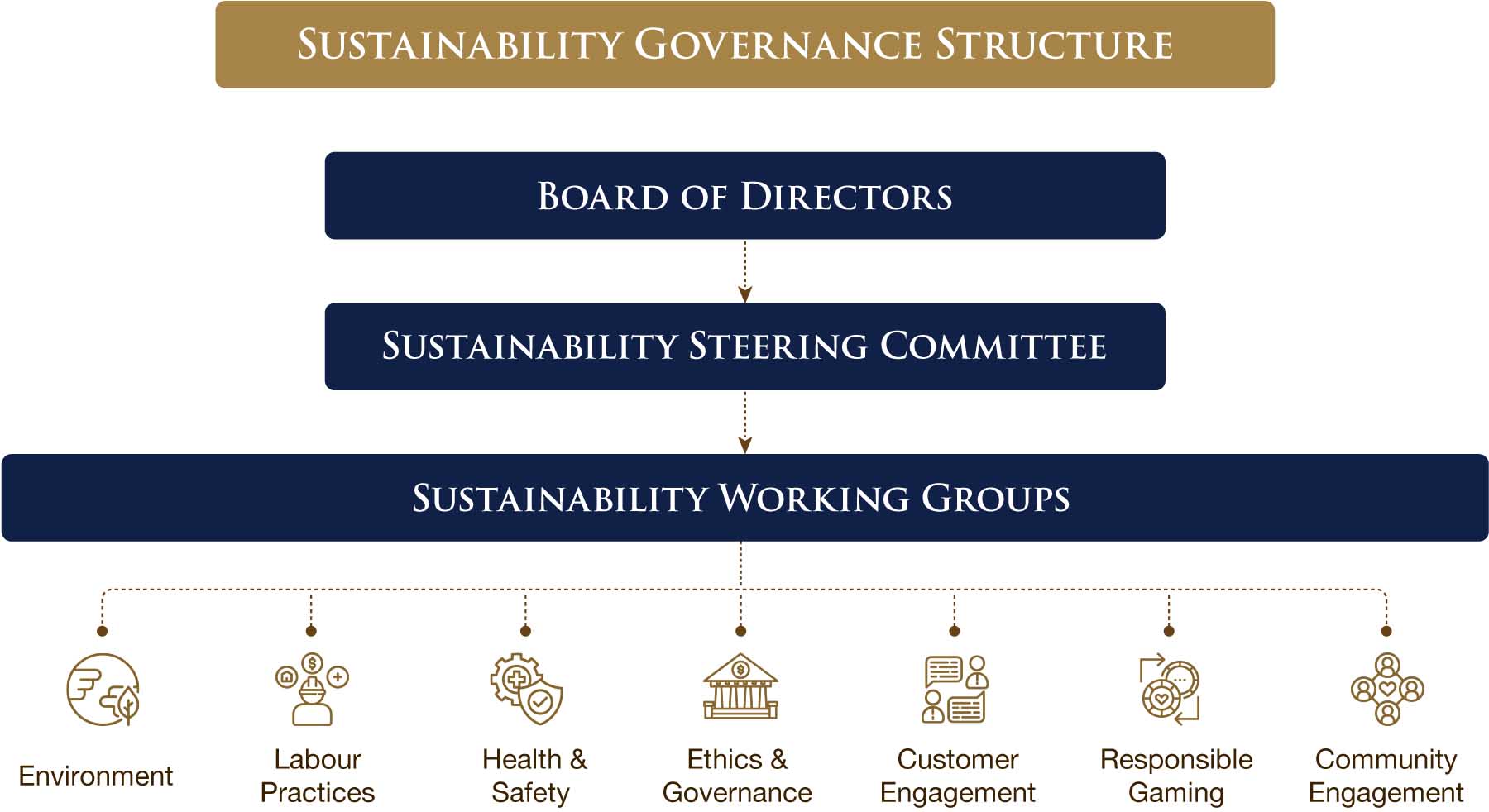 Established in 2023 and approved by the Board in February 2024, the sustainability governance structure sets out the roles and responsibilities at the Board, management, and department levels to identify, monitor, report and improve our ESG performance and oversight of ESG risks and opportunities.