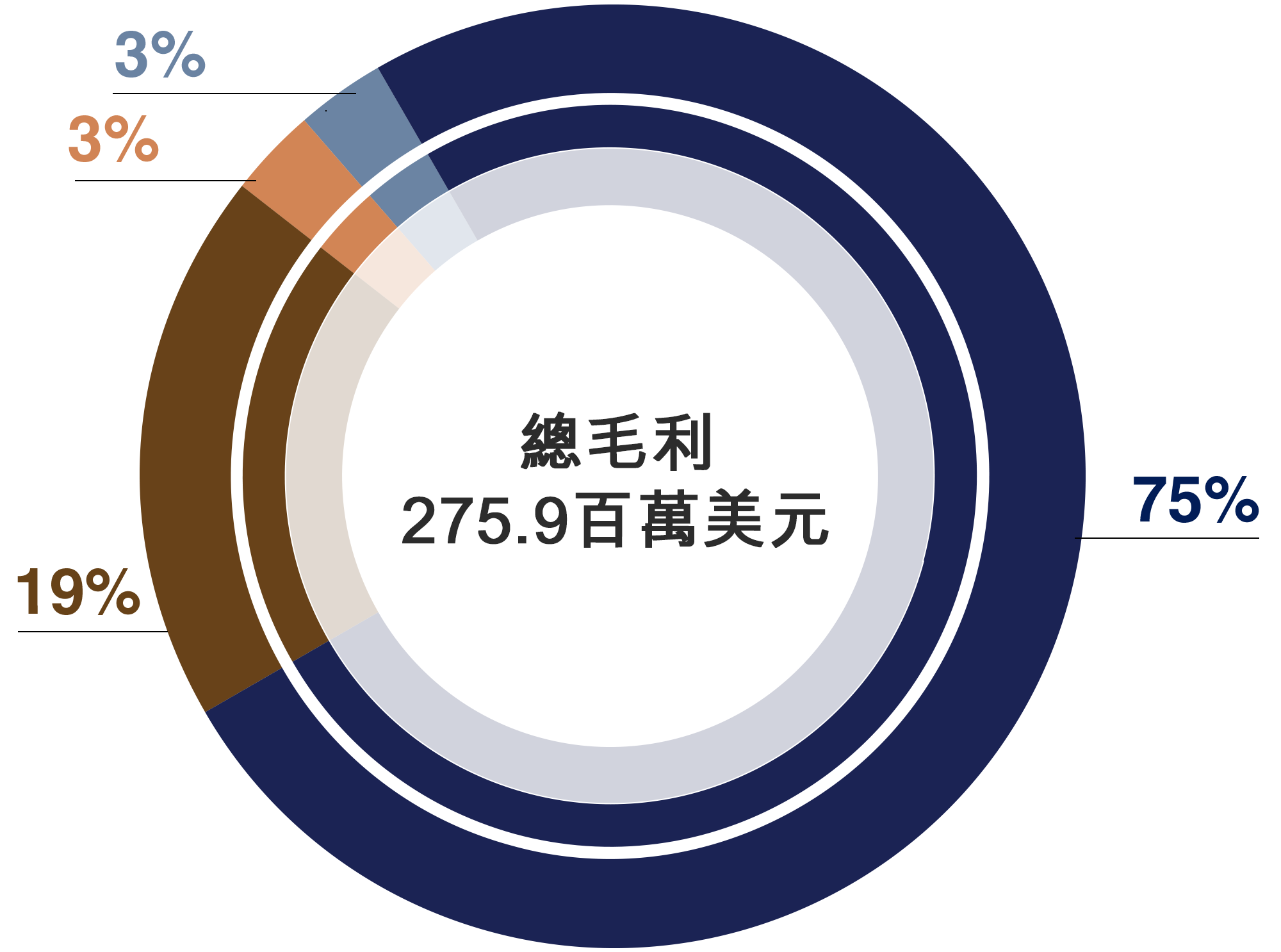 | 百萬美元 | % | 百萬美元 | % | % | |