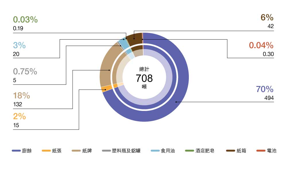 | 廢物 | 實現100%的廚餘回收 | 維持100%的廚餘回收 | 進行中 | |